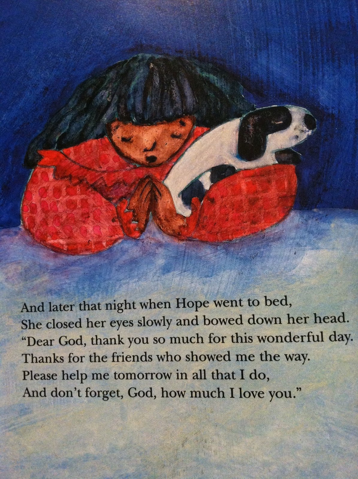 Once I read through this book alone, I knew it had a special place in Brian's basket. All morning the three of us read books together - and Brian asked for this book twice. We often casually talk about God and Heaven and angels together - especially at night. Each night at bedtime he asks, "Want to lay on my bed for a little bit and look up at my stars, Mommy?" And we do. We lay on our backs...hold hands...and look up at the glowing stars on his ceiling. He tells me where everyone lives as he points up to the sky. "Pop lives in that star... and Darcy is in that star..."